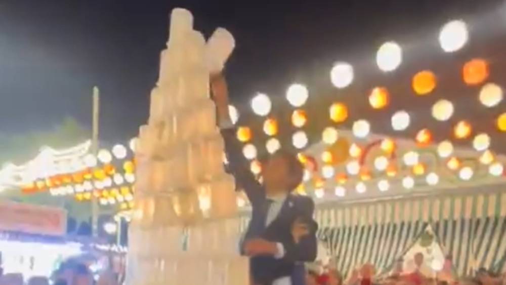 En este sentido, se dio paso a otro tipo de contenido, más agradable. Una de las últimas locuras que se han podido vivir en la Feria de Sevilla es la construcción de una enorme pirámide elaborada con jarras de rebujito. La edificación sobrepasó incluso los dos metros de altura, unas 19 jarras en fila.