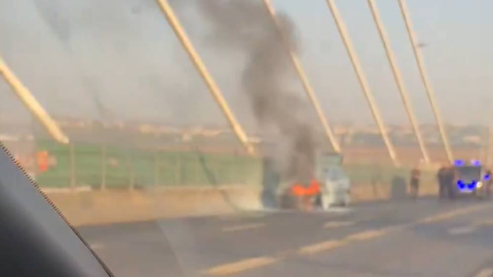 Arde un coche en el Puente del Centenario en la mañana de este lunes, provocando importantes retenciones en la SE-30 y en los accesos y salida de la ciudad, ya que el vehículo se encontraba en sentido Cádiz. Al parecer, una avería en el motor sería causante del fuego.