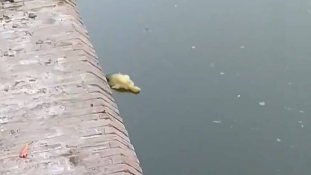 Una cría de pato muerta en el estanque del Parque de María Luisa. - Pptxo