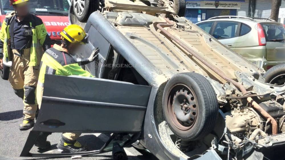 Un conductor de 51 años resultó herido leve este sábado después de sufrir un aparatoso accidente en la calle Marqués de Pickman, en Sevilla. El vehículo que conducía volcó tras chocar contra otro que se encontraba estacionado, según informó el servicio de Emergencias Sevilla.