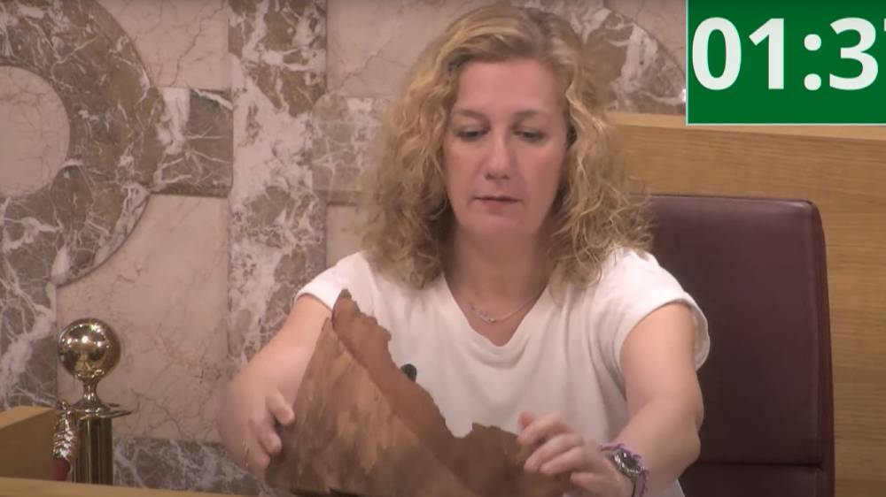 Dos trozos del ficus talado definitivamente el pasado mes de agosto en la Parroquia de San Jacinto han aparecido en la Comisión Especial de Control y Fiscalización del Gobierno, celebrado este viernes en el Ayuntamiento de Sevilla. Los cachos de madera pertenecientes al ya inexistente arbolista de Triana salieron a escena durante una de las intervenciones de Susana Hornillo, portavoz de Podemos.