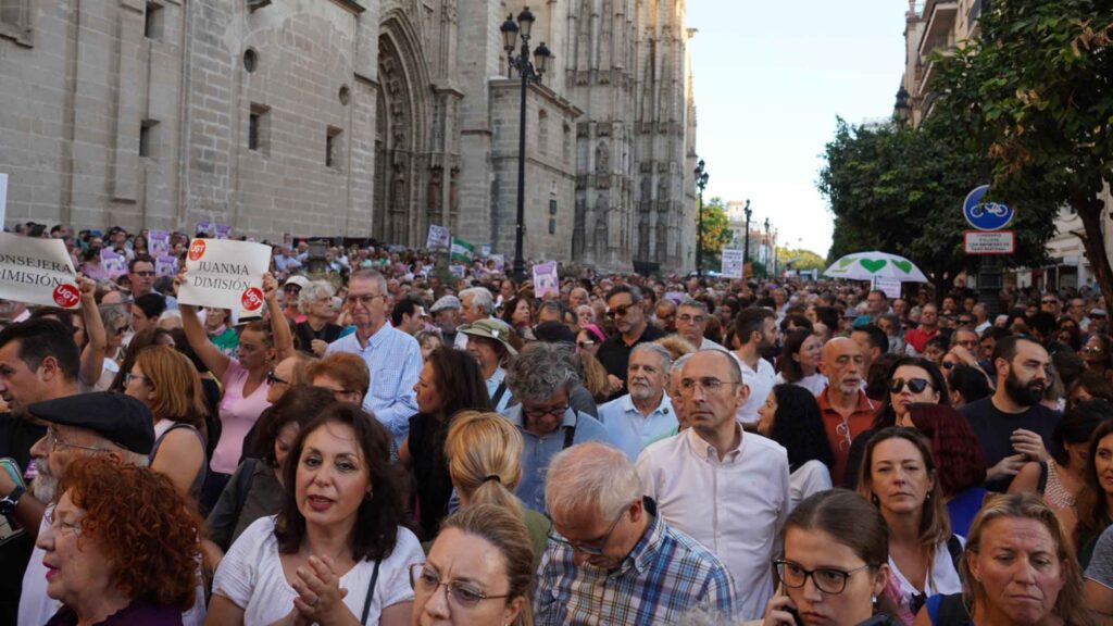 Una oleada de manifestantes se ha concentrado este miércoles frente a la sede del Servicio Andaluz de Salud en Sevilla tras el escándalo de los cribados de cáncer de mama. Centenares de personas han pedido la dimisión del presidente andaluz y de la consejera de Salud por los fallos en la comunicación de los resultados de mamografías en al menos dos mil mujeres.