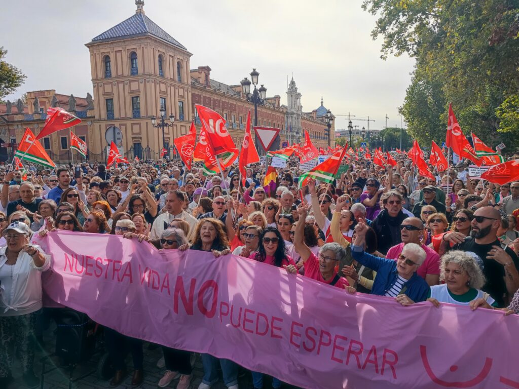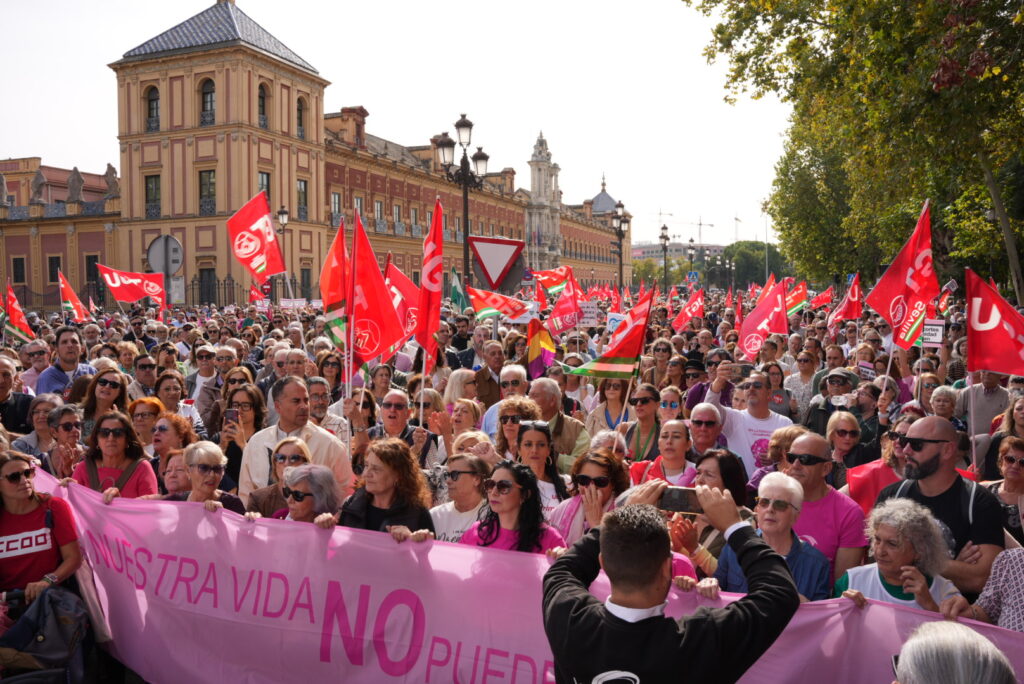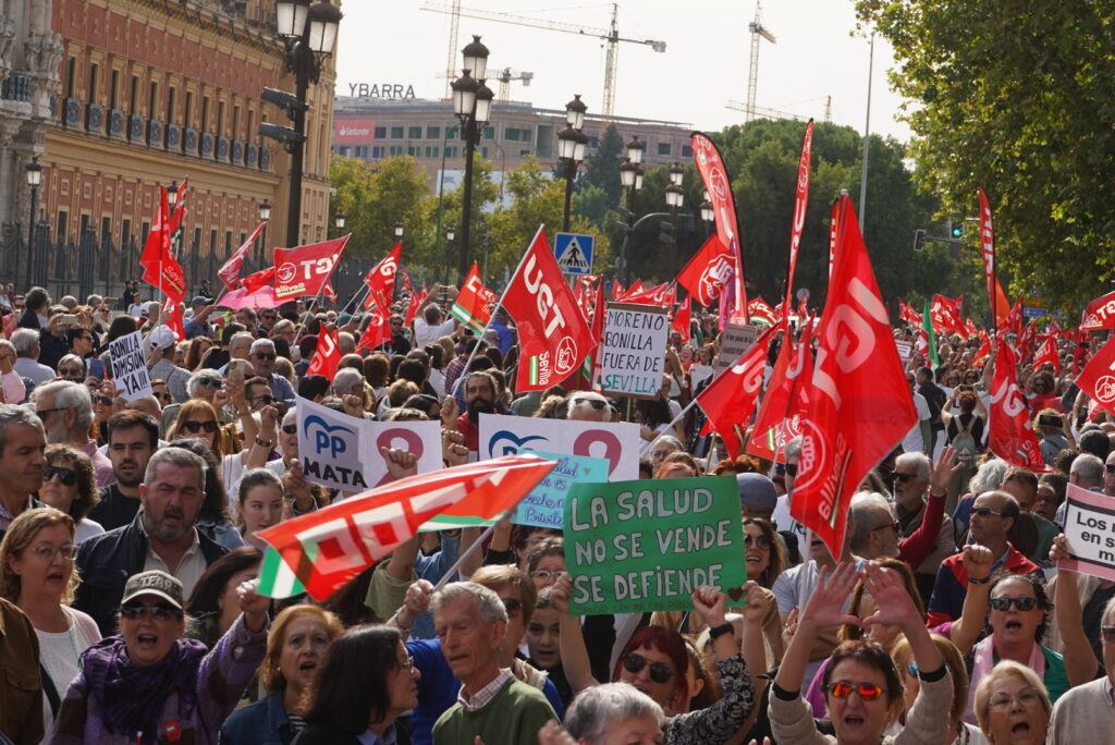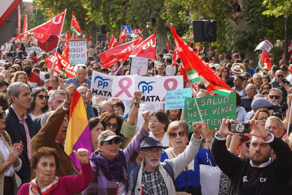 Según datos recogidos por la Policía Nacional y confirmados por la Subdelegación del Gobierno en Sevilla, la asistencia superó las 12.000 personas. En la marcha, sindicatos y colectivos insistieron en recuperar la atención presencial y revertir derivaciones al sector privado. El recorrido, multitudinario y pacífico, mantuvo el pulso hasta desembocar en San Telmo, sede de la Presidencia de la Junta, donde la multitud cerró con aplausos la lectura del texto final.