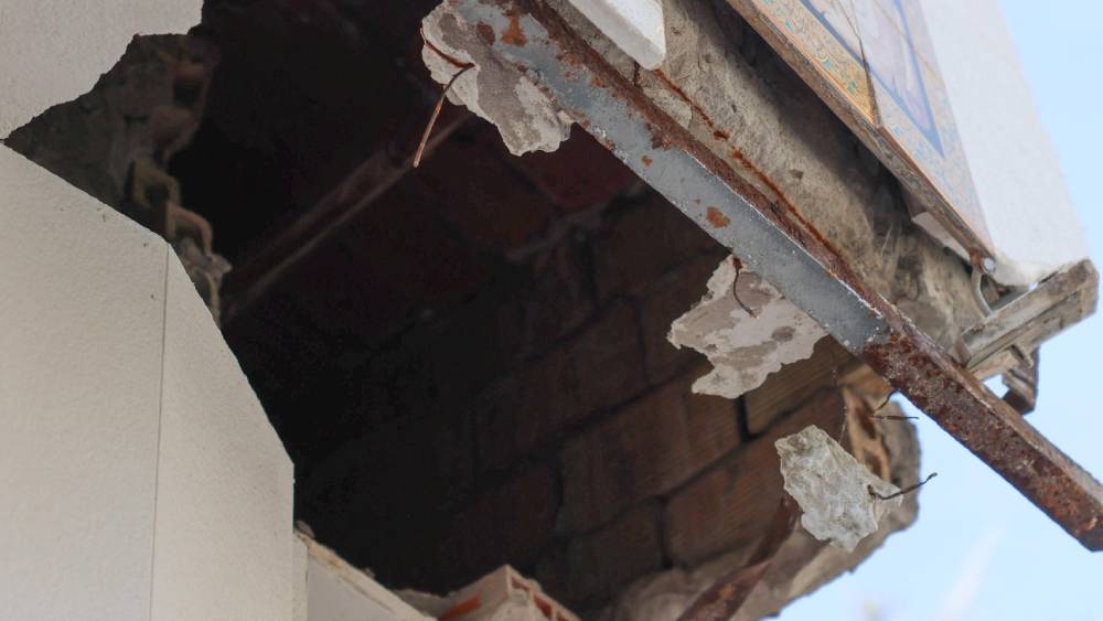 El fuerte impacto ha afectado a parte de la fachada, así como al marco ornamental que rodea el azulejo dedicado a la Virgen de la Esperanza de la Hermanda de la Trinidad. De hecho, se puede observar cómo se han desprendido varios trozos como consecuencia del choque. Afortunadamente, la composición cerámica no ha sufrido daños significativos. Sin embargo, ya no dispone de la parte inferior que ayuda a mantenerlo en la fachada, por lo que peligra.