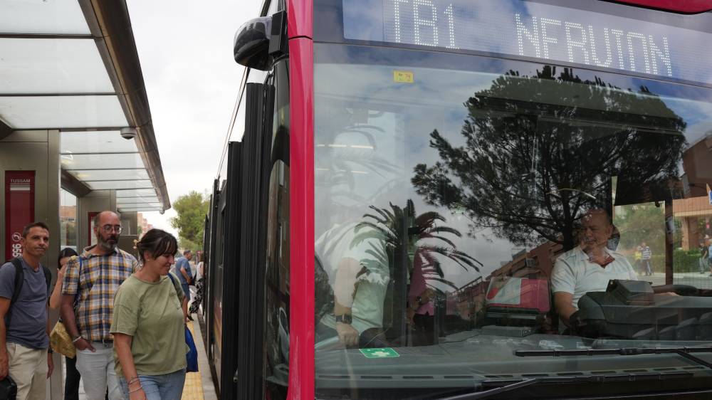 Unos viajeros suben al tranvibús en una de las paradas. - SA