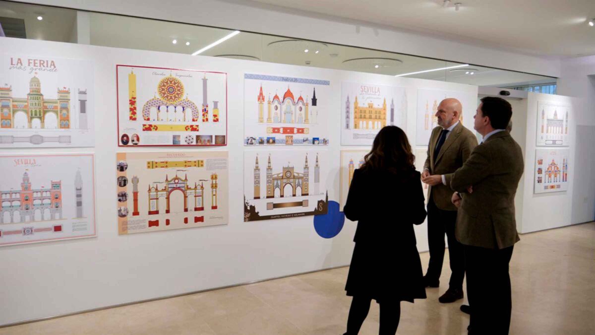 El delegado de Fiestas Mayores del Ayuntamiento de Sevilla, Manuel Alés, y la presidenta del Colegio Oficial de la Arquitectura Técnica de Sevilla, Helena Ruiz Fernández, han inaugurado este martes la exposición que reúne los proyectos participantes en el concurso de ideas para la Portada de la Feria de Abril 2026. En el acto ha estado presente también el autor del diseño ganador, el arquitecto italiano Davide Gambini.