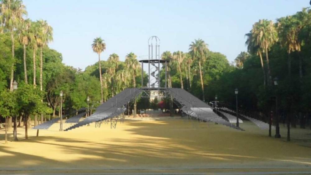 A ambos lados de la pasarela se crearán dos áreas de juego tematizadas, de unos 350 metros cuadrados cada una, dedicadas a símbolos esenciales de la identidad sevillana: la Feria de Abril, la Semana Santa y las fiestas populares de los barrios. Estos espacios incorporarán elementos dinámicos que estimularán la actividad física, la imaginación y la interacción social entre los más pequeños.
