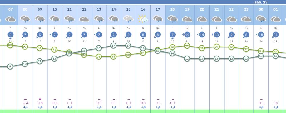 Por último, ya entrada la madrugada del sábado, se prevé una nueva tanda de lluvias entre las 00:00 y la 1:00 horas, lo que cerrará un día con notable presencia de inestabilidad atmosférica.