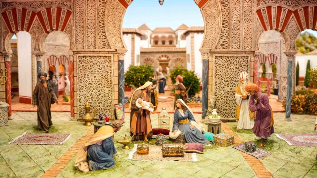 El Palacio de los Marqueses de la Algaba vuelve a acoger un belén de inspiración mudéjar, que destaca por su integración con el valor histórico del edificio. La exposición estará abierta desde el 5 de diciembre hasta el 7 de enero con los siguientes horarios: