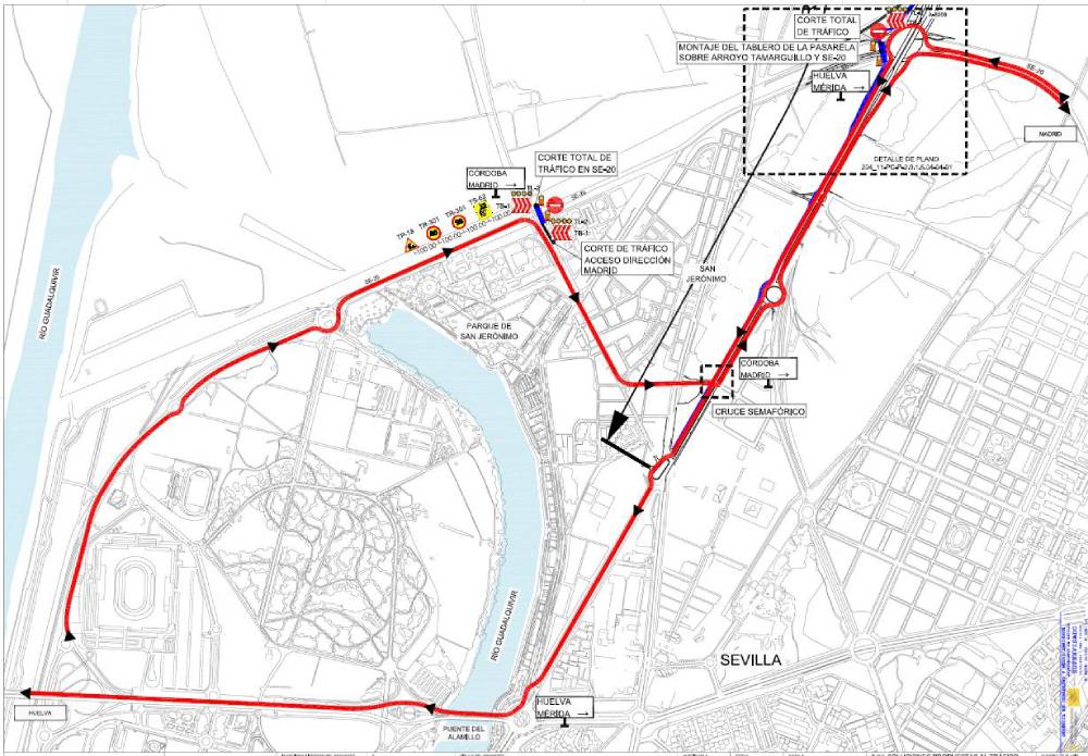 Para garantizar la fluidez del tráfico, el Ayuntamiento mantendrá las mismas alternativas de circulación ya habilitadas en el anterior corte. En sentido sur, los desvíos se realizarán por la SE-20, Avenida de la Biología, Avenida de San Jerónimo, Glorieta Olímpica y SE-30. En sentido norte, el itinerario alternativo discurrirá por la SE-20, calle Navarra, calle Cataluña, Avenida de San Jerónimo, Avenida de la Biología y SE-20.