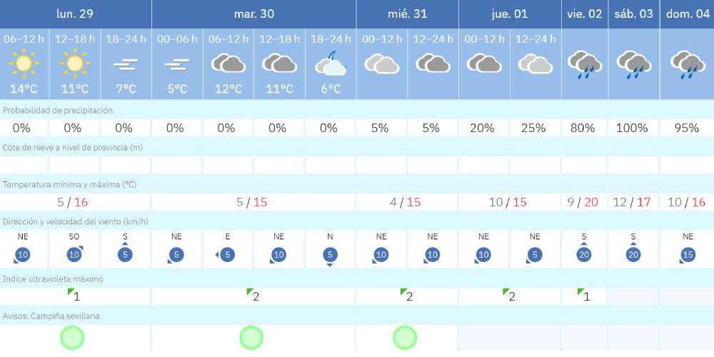 Sevilla ya tiene fecha marcada en el calendario para la primera lluvia destacada de 2026. De acuerdo con la previsión de la Agencia Estatal de Meteorología (Aemet), el cambio de tiempo será evidente a partir del viernes 2 de enero, con un episodio continuado de precipitaciones que se extenderá durante todo el primer fin de semana del año.