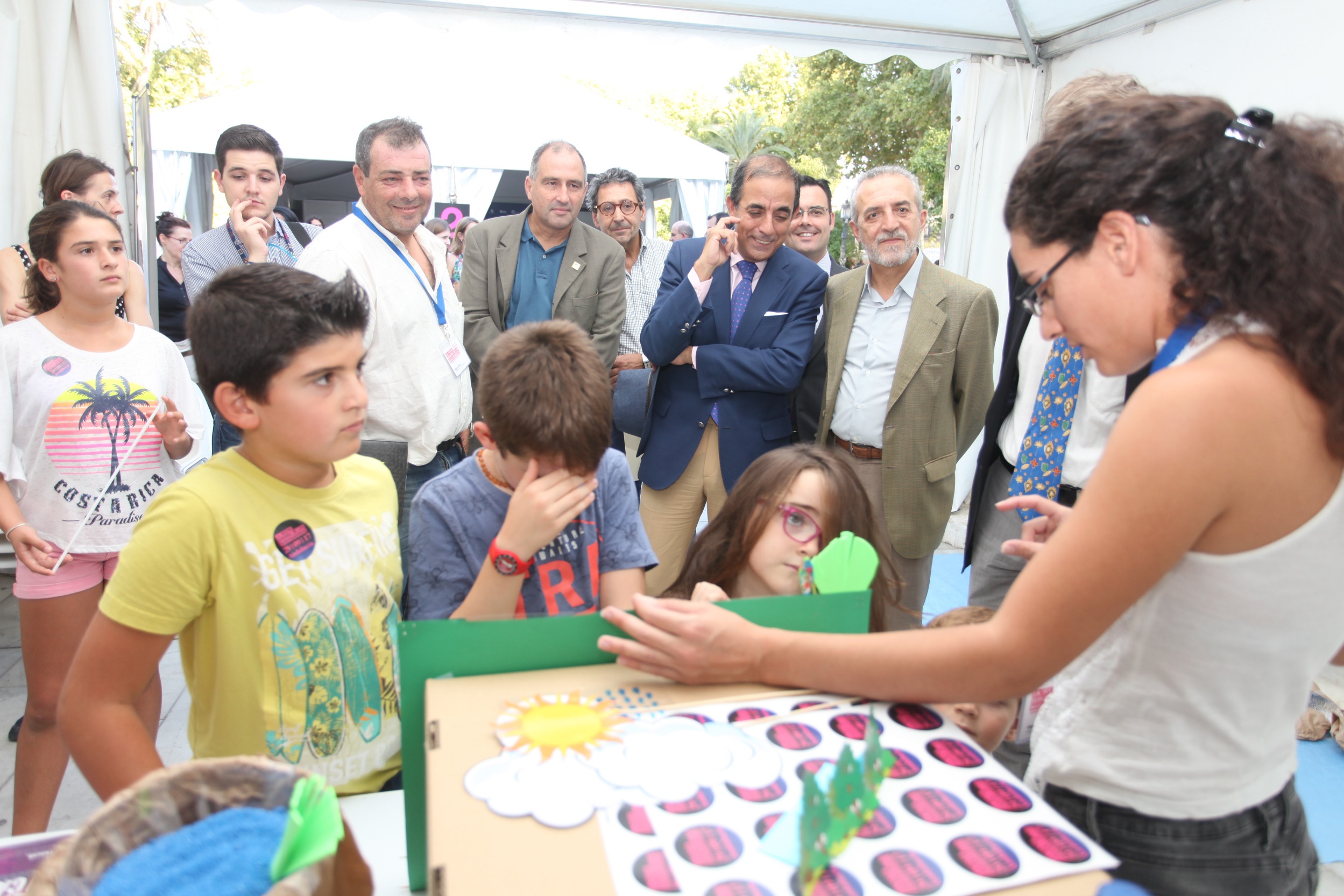Entre las carpas situadas en la Plaza Nueva, la denominada Corner Europeo se ha dedicado especialmente a los proyectos de investigación financiados por los diferentes programas de la Comisión Europea. Además, en los diferentes expositores, se han abordado de la mano de investigadores de US, UPO y CSIC temas tan diversos como por qué no hay canguros en Europa, los efectos del placebo o los sensores ópticos de gases y su particular forma de “ver el olor”, entre otros.