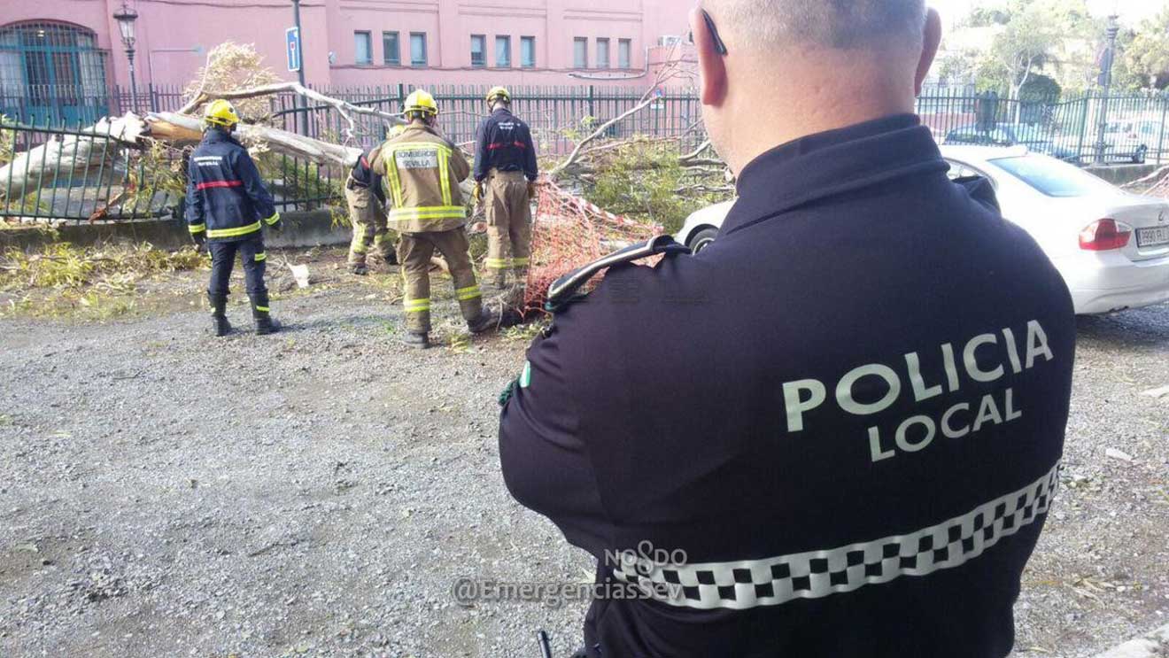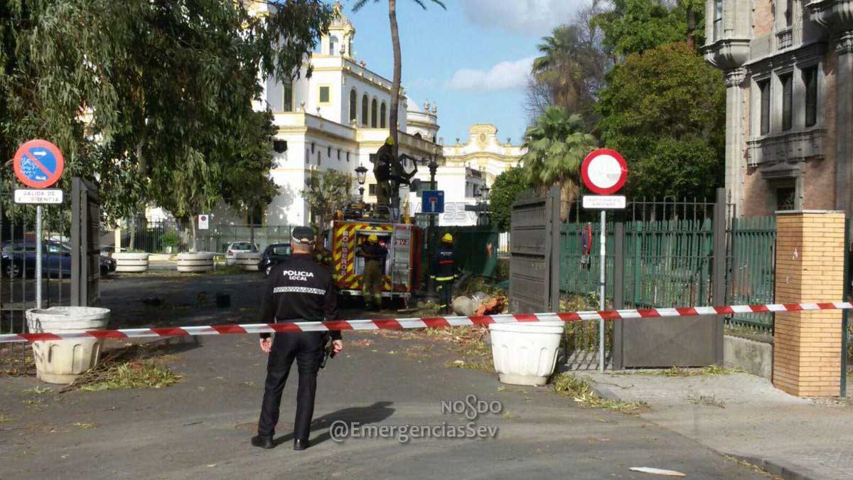 Caída de la rama de un árbol este jueves en las inmediaciones del Lope de Vega/ Delegación de Seguridad