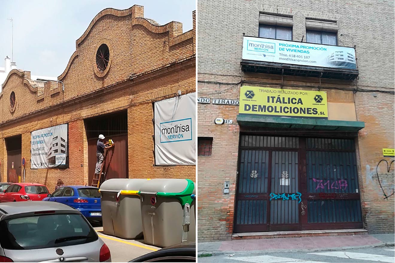 La Asociación para la Defensa del Patrimonio de Andalucía (Adepa) ha denunciado ante la Gerencia de Urbanismo del Ayuntamiento hispalense el derribo inminente de unas naves industriales situadas en la calle Fernando Tirado, en el barrio de Nervión, pertenecientes a la última etapa del arquitecto Aníbal González. González es el principal referente de la arquitectura regionalista sevillana y fue el arquitecto director de la Exposición Iberoamericana desde 1911 a 1926 y artífice de la Plaza de España, entre otros monumentos conocidos.