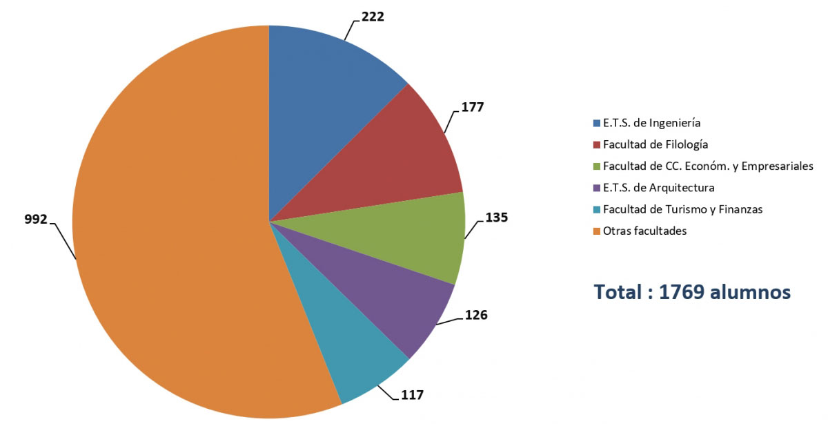 Los centros de la Universidad de Sevilla con mayor número de estudiantes acogidos al programa de movilidad son la Escuela Técnica Superior de Ingeniería (222 alumnos), la Facultad de Filología (177), la Facultad de Ciencias Económicas y Empresariales (135), la Escuela Técnica Superior de Arquitectura (126) y la Facultad de Turismo y Finanzas (117).