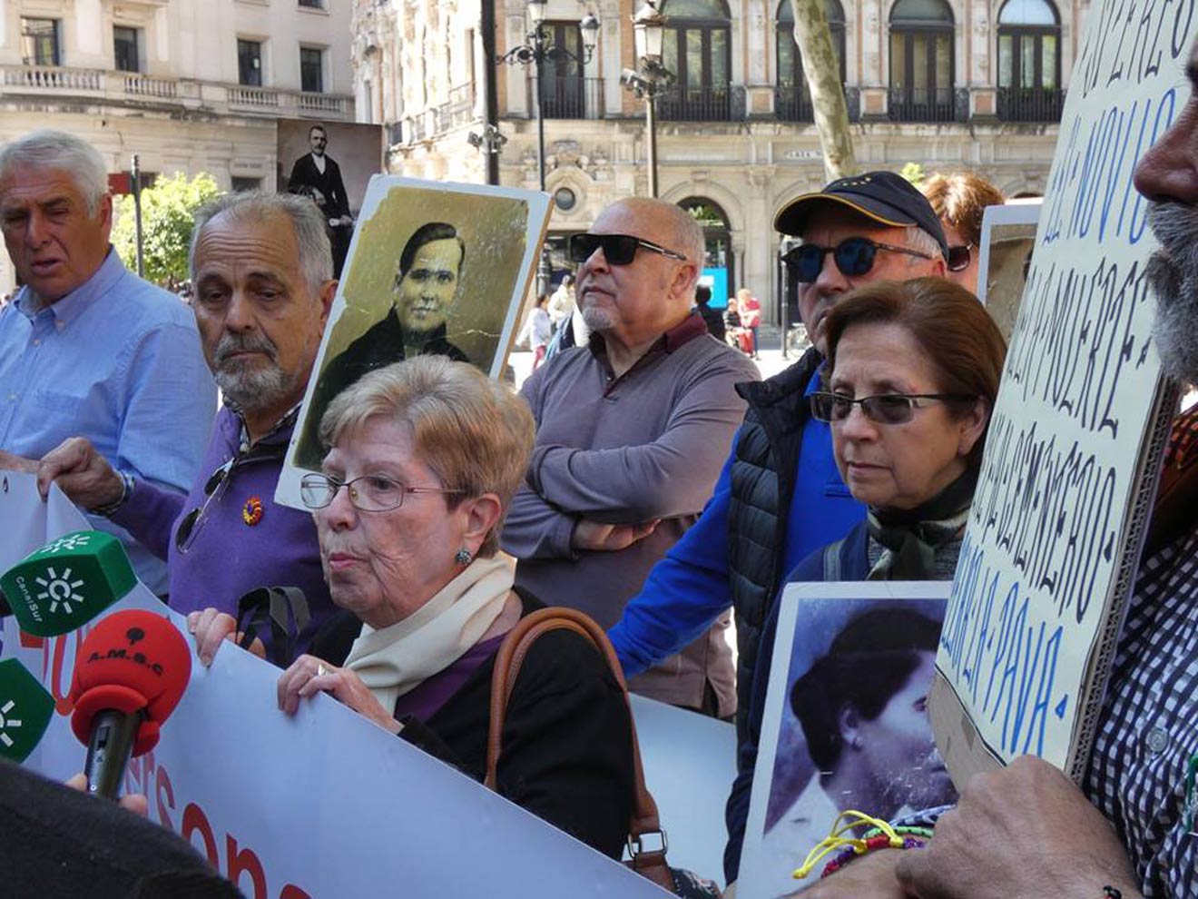 Los colectivos de recuperación de la memoria histórica de Sevilla han celebrado este jueves una concentración a las puerta del Ayuntamiento hispalense, para manifestar su repulsa a la posibilidad de que el ministro de Justicia, Rafael Catalá, asistiese al acto celebrado por la institución para formalizar la declaración de «reparación y reconocimiento personal» concedida por tal ministerio respecto a 479 funcionarios y empleados municipales sancionados y «depurados» por motivos políticos después del alzamiento militar de 1936.