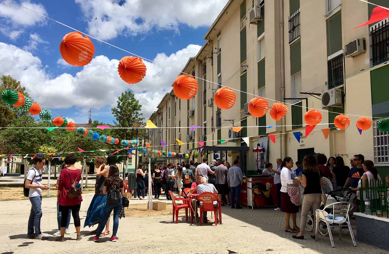Los espacios públicos han sido adornados con guirnaldas, macetas, murales y, en algunos casos, cruces de mayo para así celebrar una jornada de convivencia vecinal que finalizará con música y teatro en un escenario habilitado en el Parque Guadaíra, al que los asistentes han llegado conducidos por una batucada y tras participar también en una ruta de la tapa por el barrio.