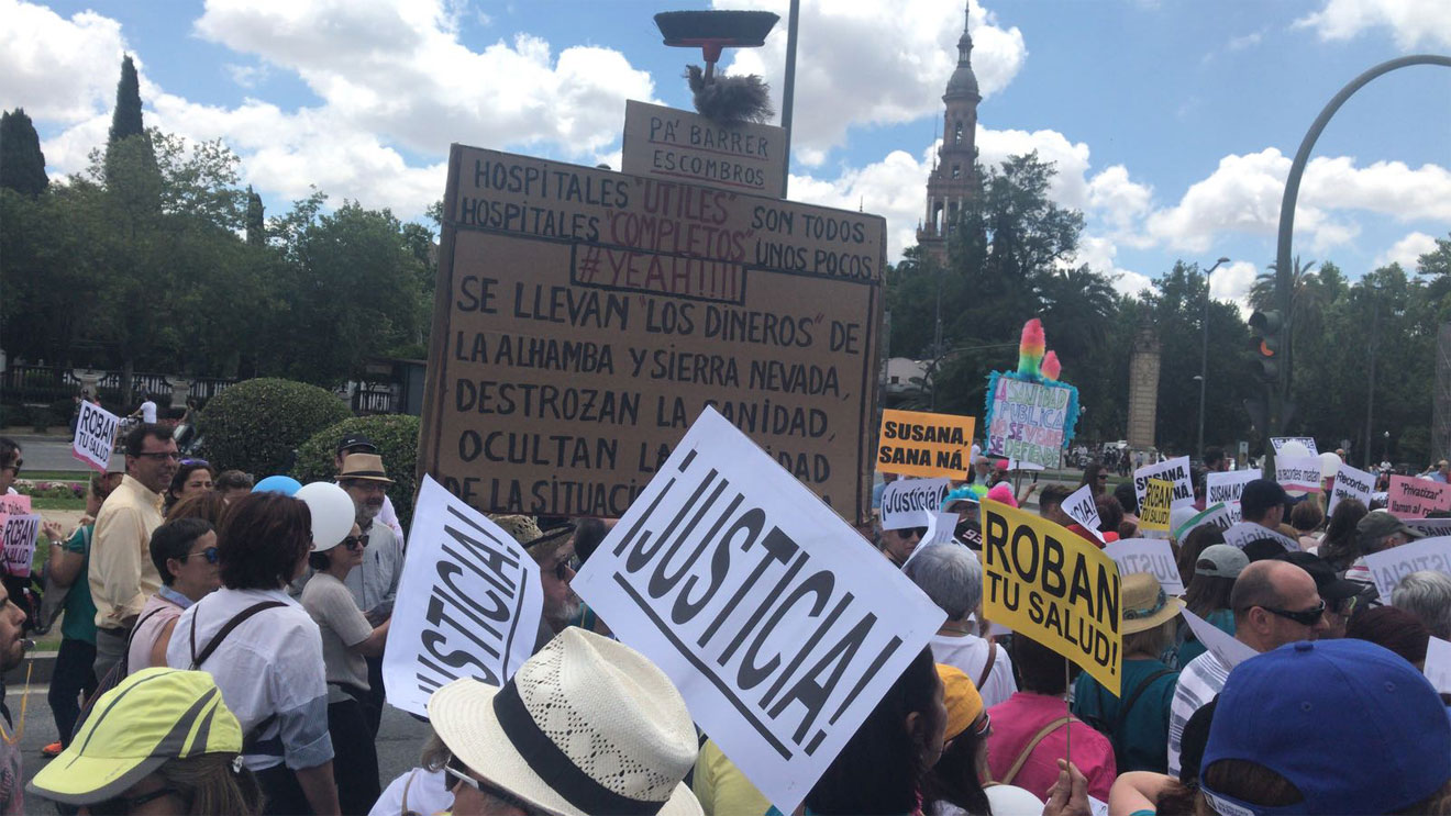 Justicia por la Sanidad lamenta que la sanidad andaluza ha sufrido «un brutal recorte» por parte de la Junta de Andalucía. De hecho, según los últimos datos sobre gasto sanitario publicado por el Ministerio de Sanidad, «Andalucía es la comunidad autónoma que menos invierte en sanidad por habitante, tan solo 1.110 euros, mientras la media nacional es de 1.332 euros por habitante», señalaban.