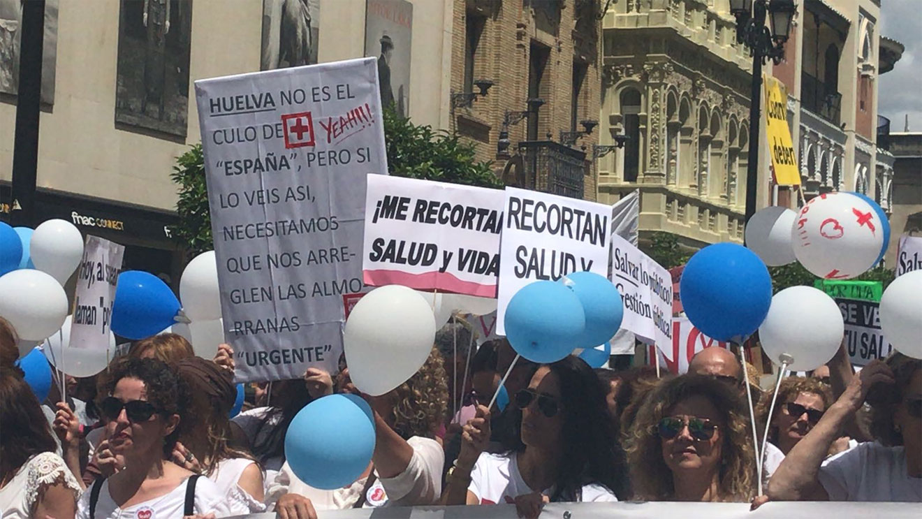 Del mismo modo, la asociación ‘Huelva por una sanidad digna’, presidida por Julia Paloma Hergueta, animó a todos los onubenses a asistir a la manifestación. Desde Huelva partieron hacia Sevilla seis autobuses. Según ‘Justicia por la Sanidad’, fueron fletados más de 100 autobuses por particulares y plataformas para acudir a la cita, desde todas partes de Andalucía.