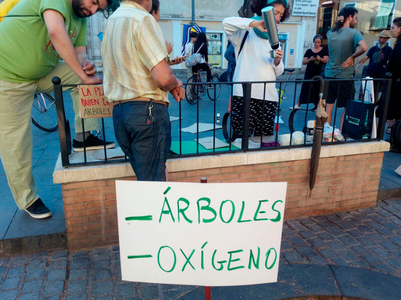 La concentración de esta mañana sucede a otra de características similares protagonizada en esta misma zona de la ciudad este martes después de que el Ayuntamiento haya iniciado una campaña con el objetivo de apear todos los árboles de la ciudad que están en situación de riesgo extremo (grado cuatro) y que pueden resultar un peligro por riesgo de derrumbe. Con esta campaña se pretende acabar con los cerca de 500 árboles considerados “en situación de riesgo cuatro” por su estado de deterioro, al objeto de que estos ejemplares sean sustituidos por otros nuevos y sanos que no comporten peligro de desplome o de caída de ramas. Además, el Ayuntamiento tiene prevista la poda de otros 1.500 ejemplares.