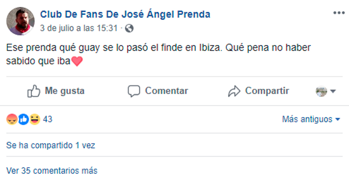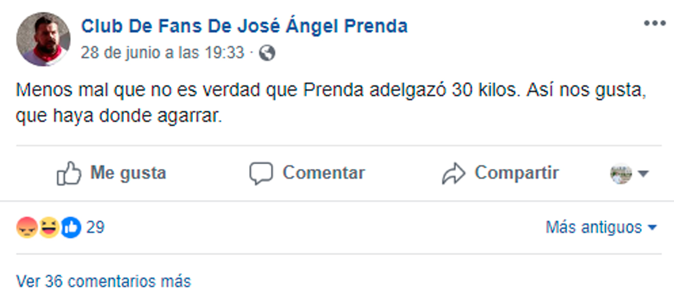 «Club de Fans de José Ángel Prenda» es el nombre que recibe una de las millones de páginas que existen en la mayor red social del mundo. La imagen de perfil de dicha comunidad, así como la de portada, es la cara del integrante de La Manada.