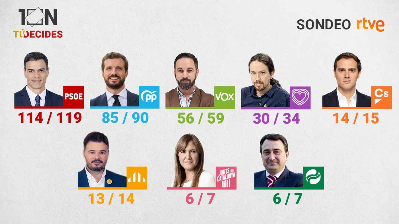 Publicado enEspaña El PSOE habría ganado, Vox tercera fuerza y hundimiento de Cs, según los sondeos por Sevilla Actualidad 10 noviembre, 201910 noviembre, 2019