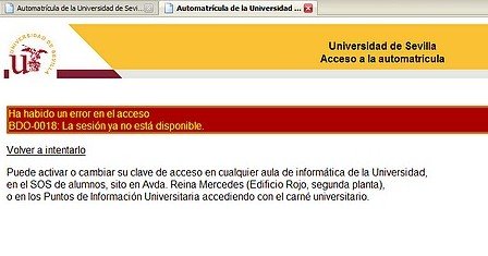 Publicado enSevilla La Universidad de Sevilla colapsada el primer día de automatrícula por Juan Carlos Romero 7 septiembre, 2009