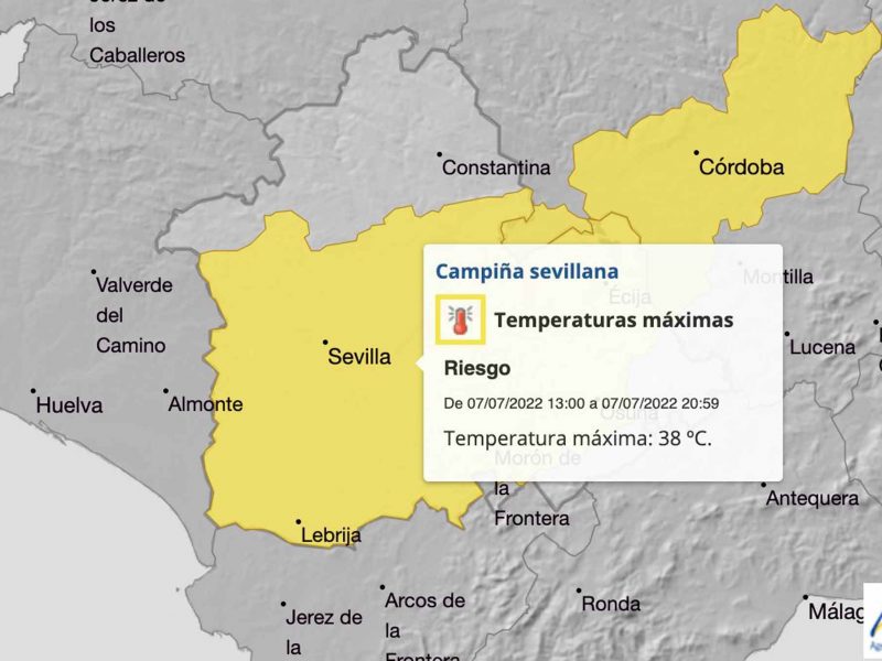Publicado enEl tiempo Alerta amarilla en Sevilla este fin de semana por las altas temperaturas por Sevilla Actualidad 6 julio, 20226 julio, 2022