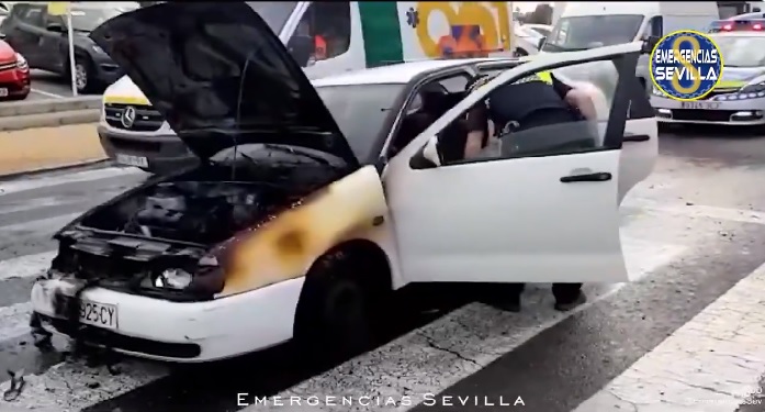 Un coche ha salido ardiendo mientras circulaba por la Carretera de Carmona. Los hechos han ocurrido a primera hora de esta mañana en la capital hispalense.