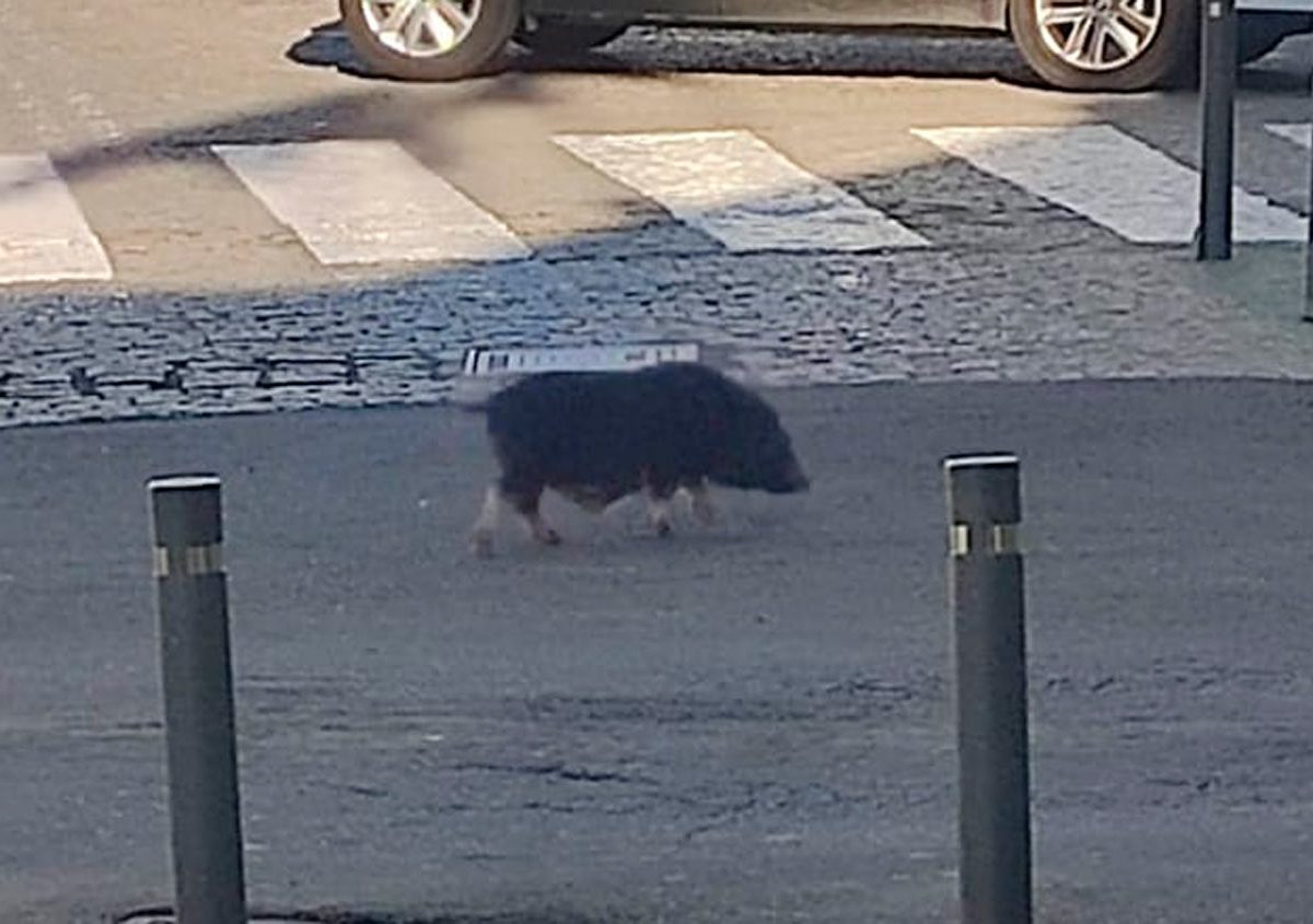 Un cerdo vietnamita se pasea por una calle de Alcalá de Guadaíra