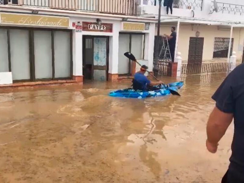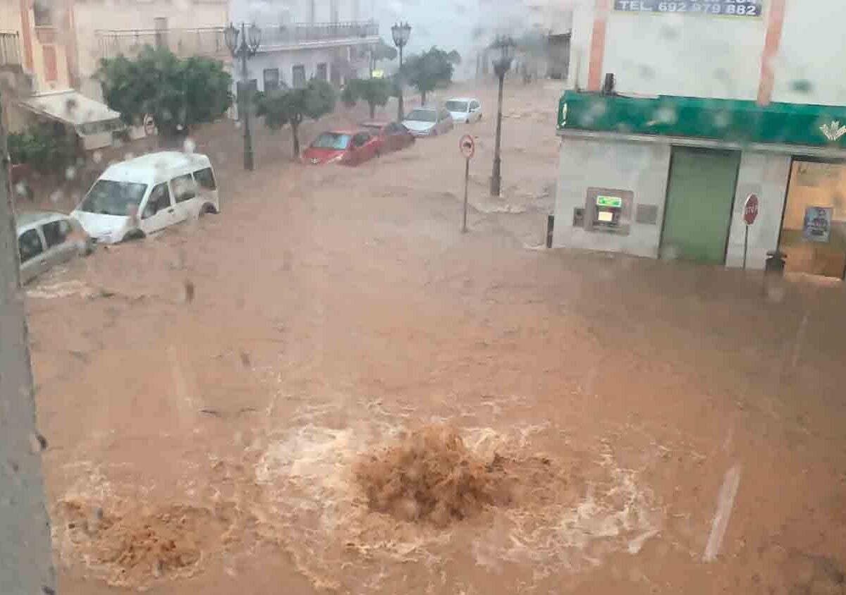 Las fuertes lluvias que se han registrado en la mañana de este jueves en algunas localidades de Huelva han provocado destrozos