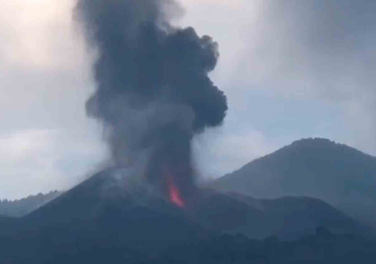 El Cumbre Vieja, el volcán de La Palma ha colapsado parcialmente el cono del volcán exponiendo así una gran fuente de lava.