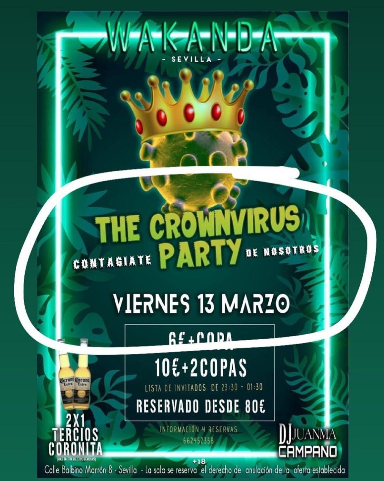 Publicado enSevilla Una discoteca de Sevilla organiza el ‘Coronavirus party’ por Sevilla Actualidad 13 marzo, 202013 marzo, 2020