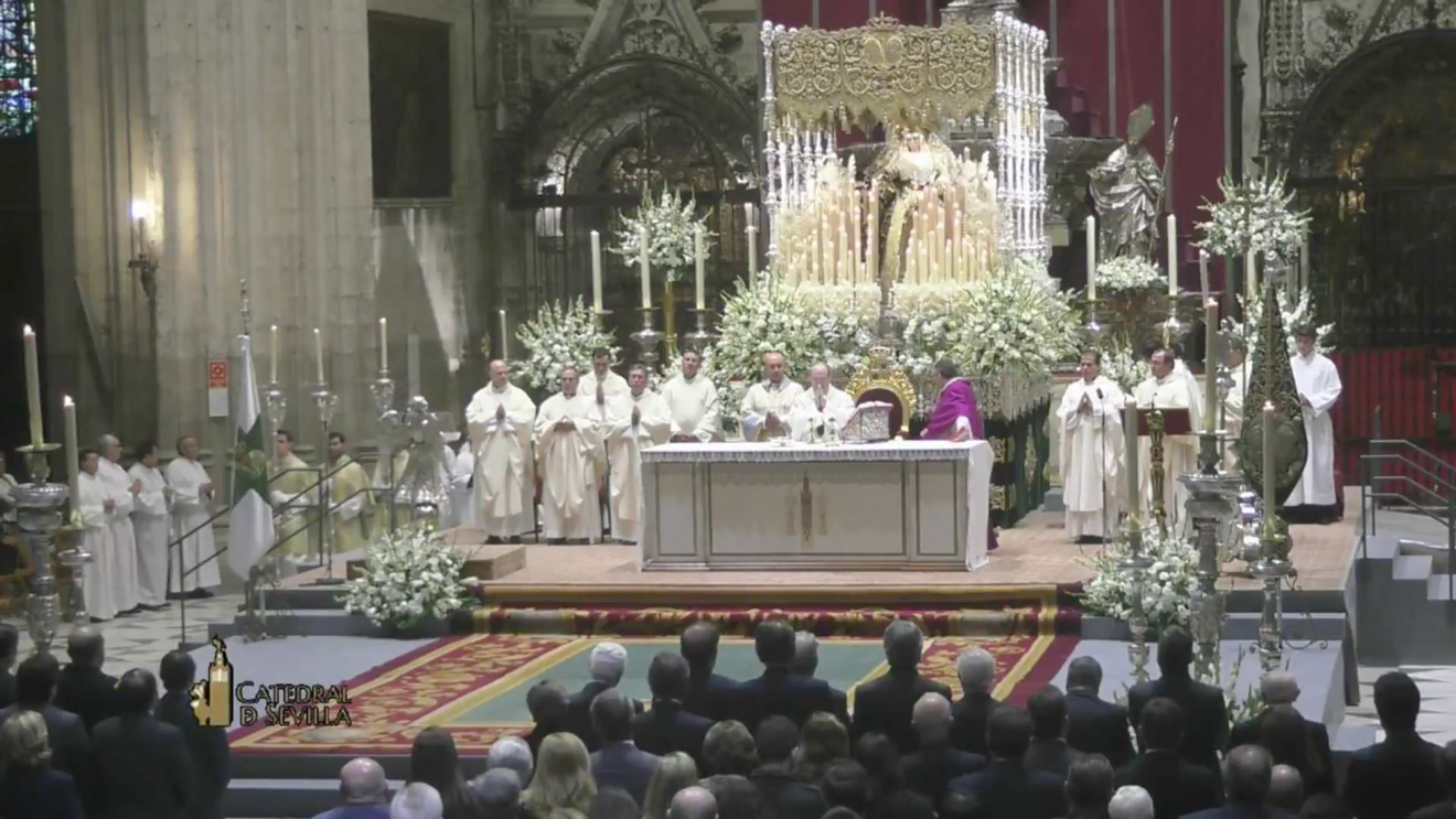 La nave del Crucero de la Catedral de Sevilla acoge este sábado 3 de noviembre la misa estacional de acción de gracias por el sexto centenario de la fundación de la Hermandad Sacramental de la Esperanza Triana. La misa comenzó a las once de la mañana, presidida por el Arzobispo, Juan José Asenjo.