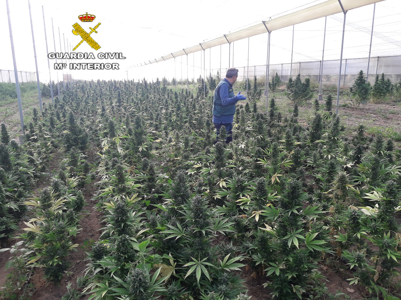 La Guardia Civil ha desarticulado un invernadero destinado a la plantación de marihuana situado en el interior de una parcela rústica en la localidad de El Cuervo. Se han detenido a seis personas responsables de la plantación y otras seis personas en calidad de investigados por realizar las labores de plantación, recolección y distribución.