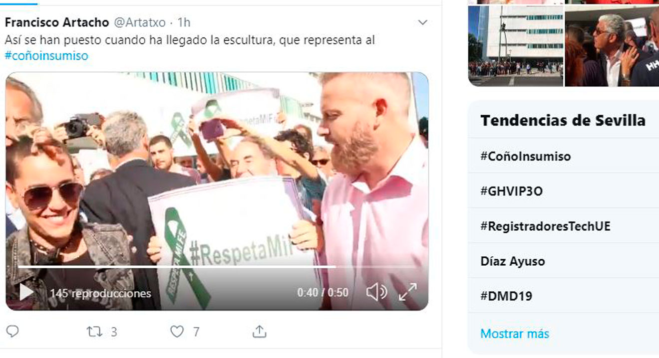 Publicado enSevilla El «coño insumiso», trending topic tras el enfrentamiento de manifestantes por el juicio por Deborah Pérez Marrodán 3 octubre, 20193 octubre, 2019