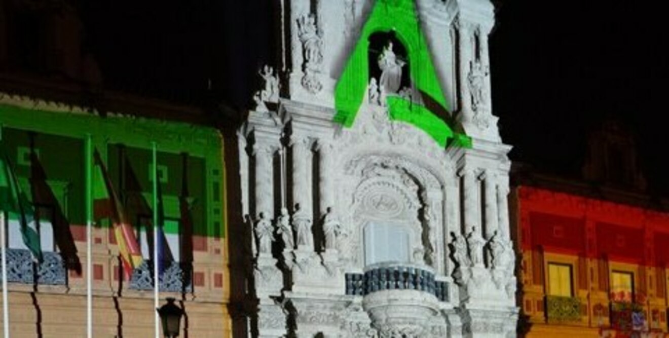 El Palacio de San Telmo de Sevilla, sede oficial de la Presidencia de la Junta de Andalucía, dio inicio la pasada noche a las celebraciones por el 40 aniversario del referéndum autonómico del 28 de Febrero con una iluminación especial y vídeo proyecciones.