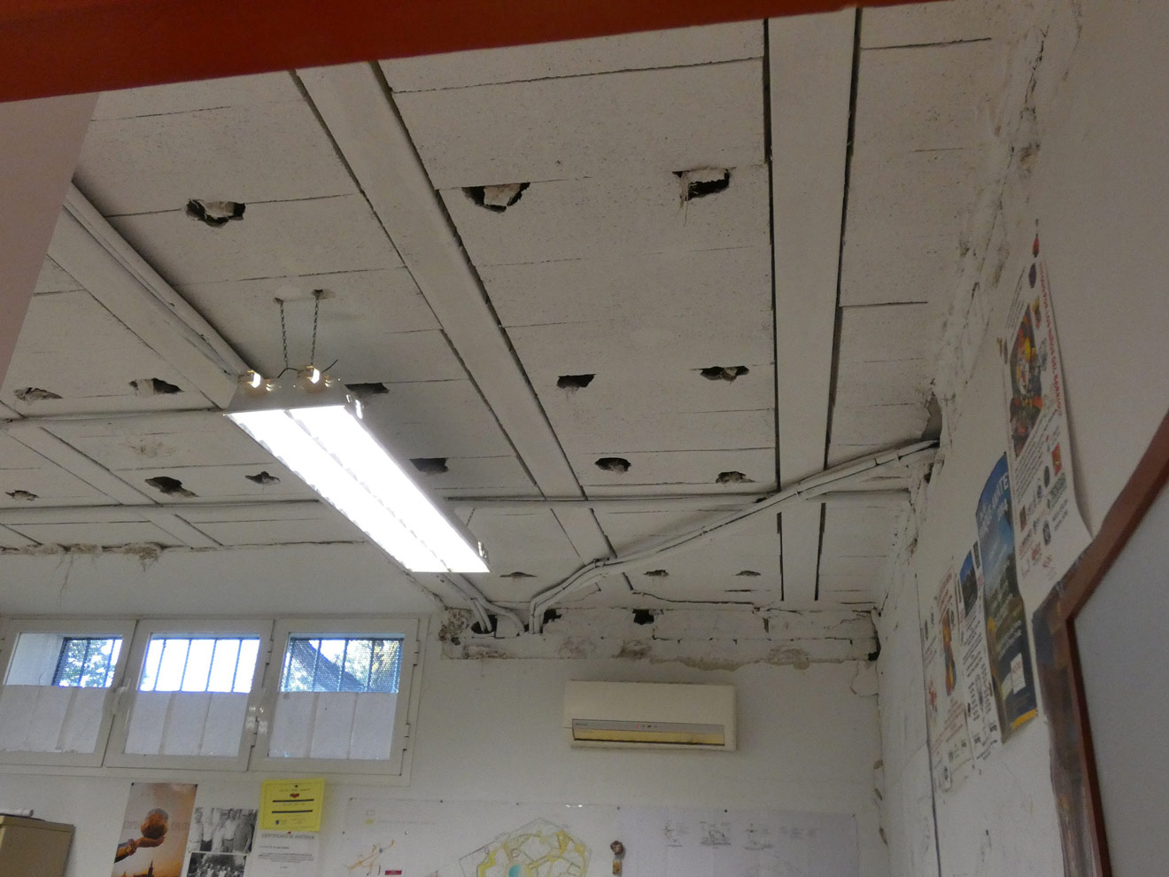 La pista se encuentra en una situación de deterioro generalizado pero lo más preocupante es el hecho de que los bordes metálicos de la misma se encuentran sueltos en largos tramos, lo que supone un riesgo de cortes para los atletas.