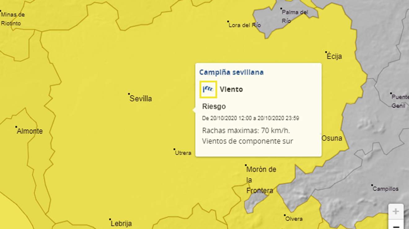 Desde este mediodía está decretado el aviso nivel amarillo por fuertes rachas de viento de hasta 70 km/h en toda la Campaña Sevillana, lo que ha obligado al Ayuntamiento de Sevilla a cerrar los parques como medida de precaución.