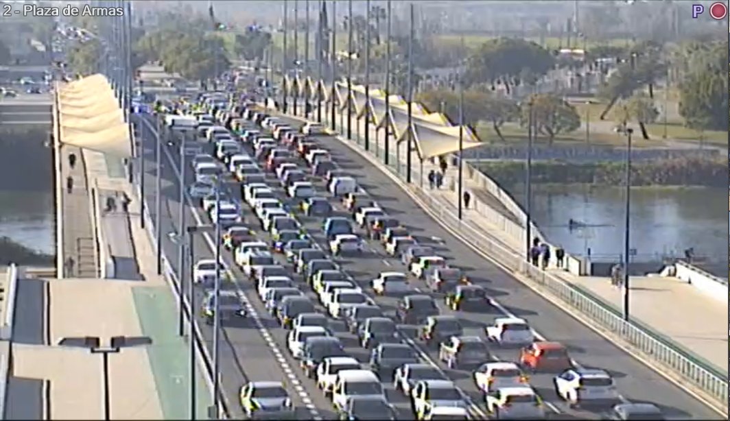 Tráfico intenso en la calle Chapina en dirección Huelva