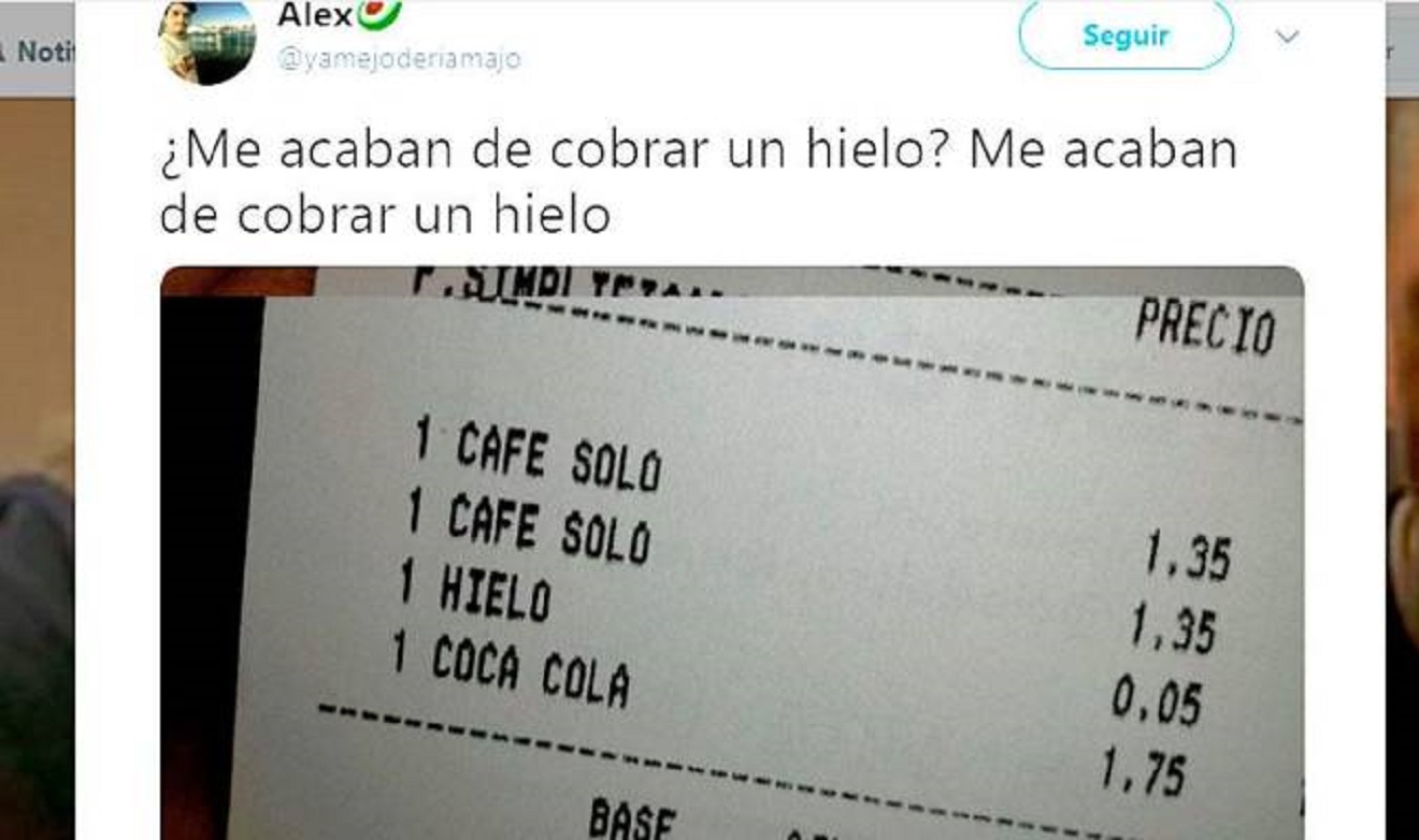 Publicado enEspaña Cobran el hielo de un café a un cliente en un bar de Sevilla por Sevilla Actualidad 24 julio, 20191 septiembre, 2020