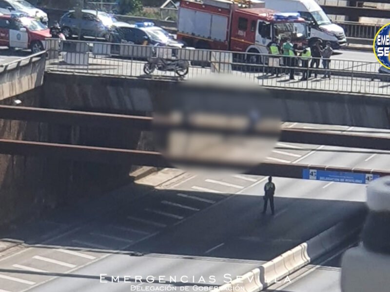 Publicado enSevilla Corte total en la Ronda Norte tras subirse una persona a una viga del paso subterráneo de Pino Montano por Alba Canovaca 18 junio, 202118 junio, 2021