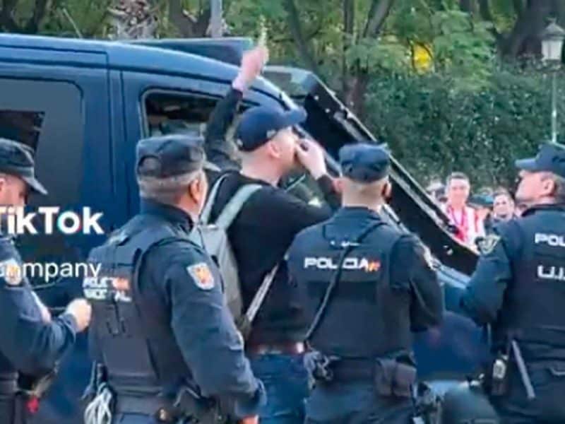 Publicado enSevilla Un hincha del PSV canta con el micrófono del furgón policial en Sevilla por Javi Gómez 17 febrero, 202317 febrero, 2023
