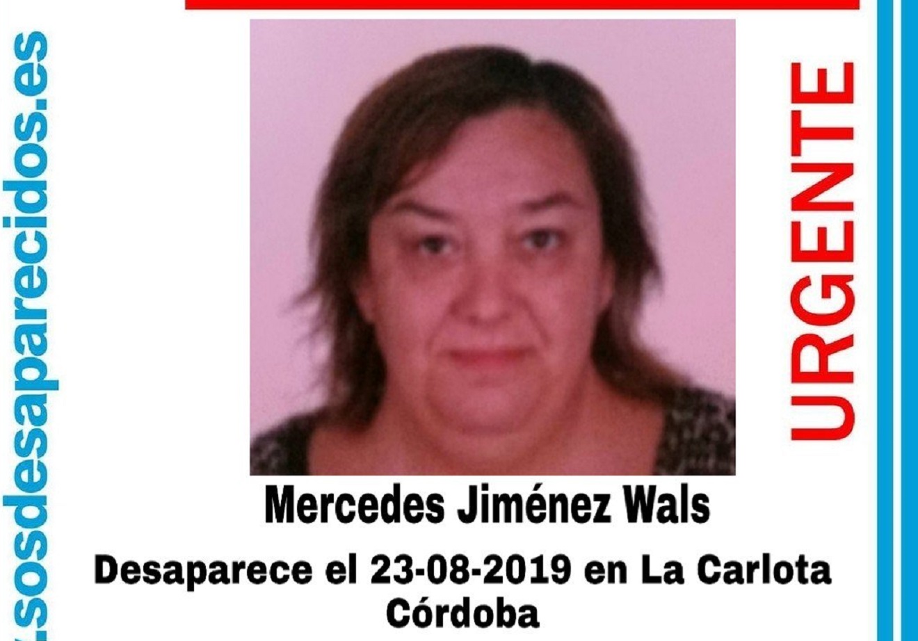 La Asociación SOS Desaparecidos se ha hecho eco de la desaparición de Mercedes Jiménez Wals, una mujer de 49 años a la que se vio por última vez a finales de agosto en el municipio cordobés de La Carlota.