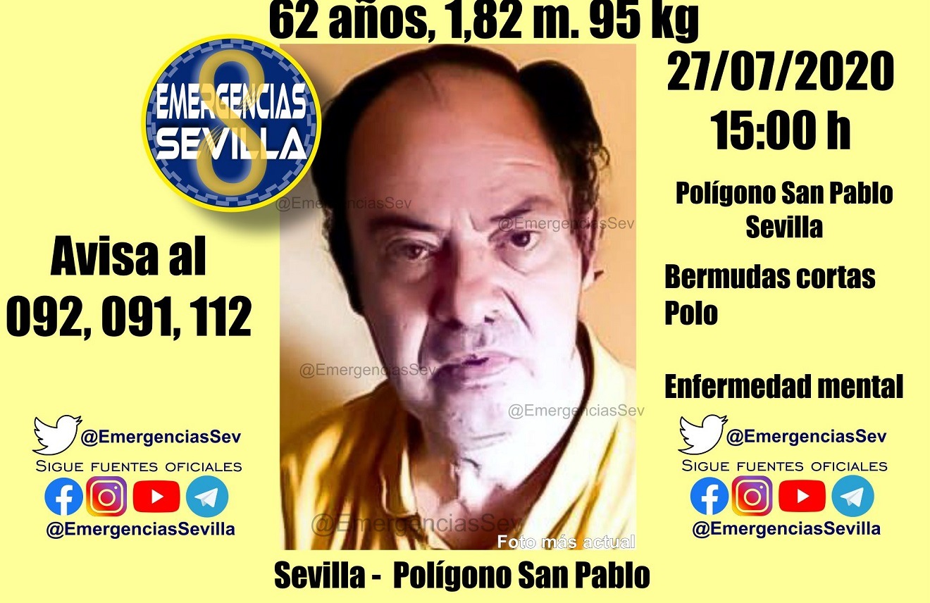 Publicado enSevilla Buscan a un hombre de 62 años desaparecido en el Polígono San Pablo por Sevilla Actualidad 29 julio, 2020