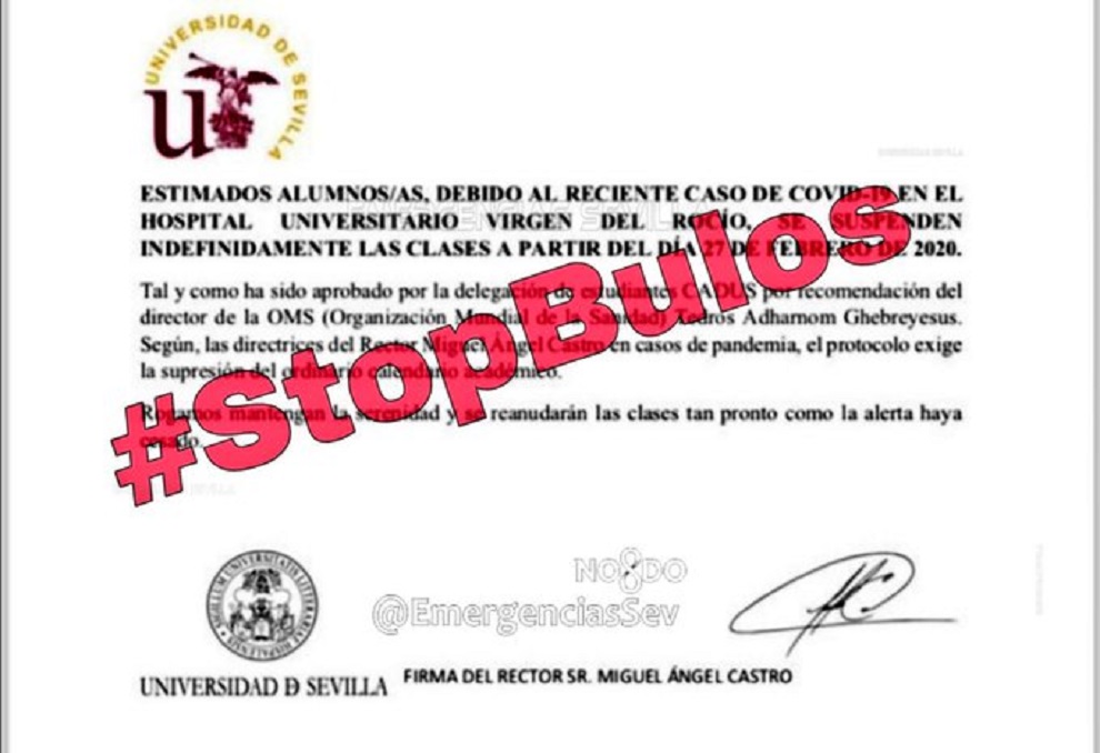 Publicado enSevilla La Universidad de Sevilla desmiente que se vayan a suspender las clases por el coronavirus por Sevilla Actualidad 27 febrero, 2020